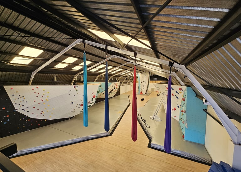 Zona de escalada con más de 435 m² de boulder y deportiva, con rotación de vias todas las semanas.